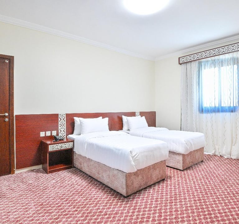 توفر هذه الغرفة سريرين منفصلين بتصميم مريح، لتناسب الأصدقاء أو الزملاء في السفر.